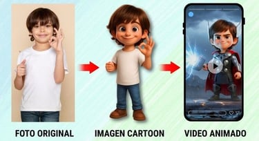 Un día decidí experimentar convirtiendo una de sus fotos en un personaje animado y crear una historia donde él era el protagonista. Al verse dentro de un mundo animado, viviendo sus propias aventuras, su reacción fue inmediata: emoción, sorpresa y su carita llena de felicidad que me conmovió profundamente.